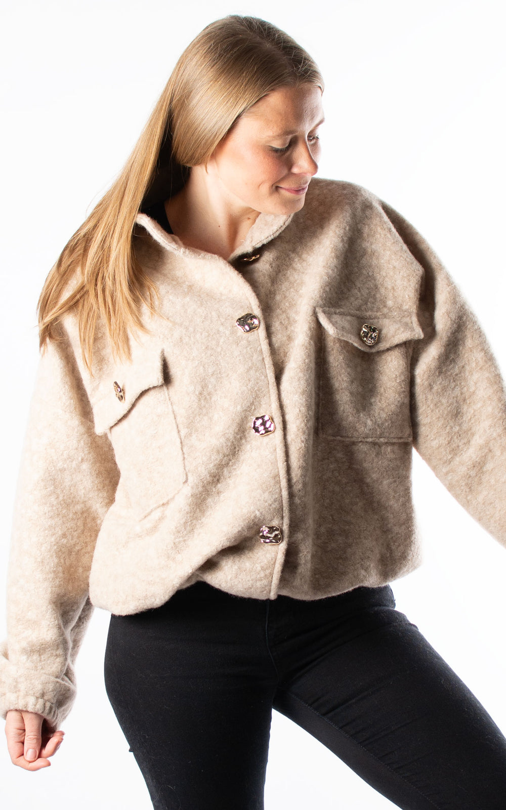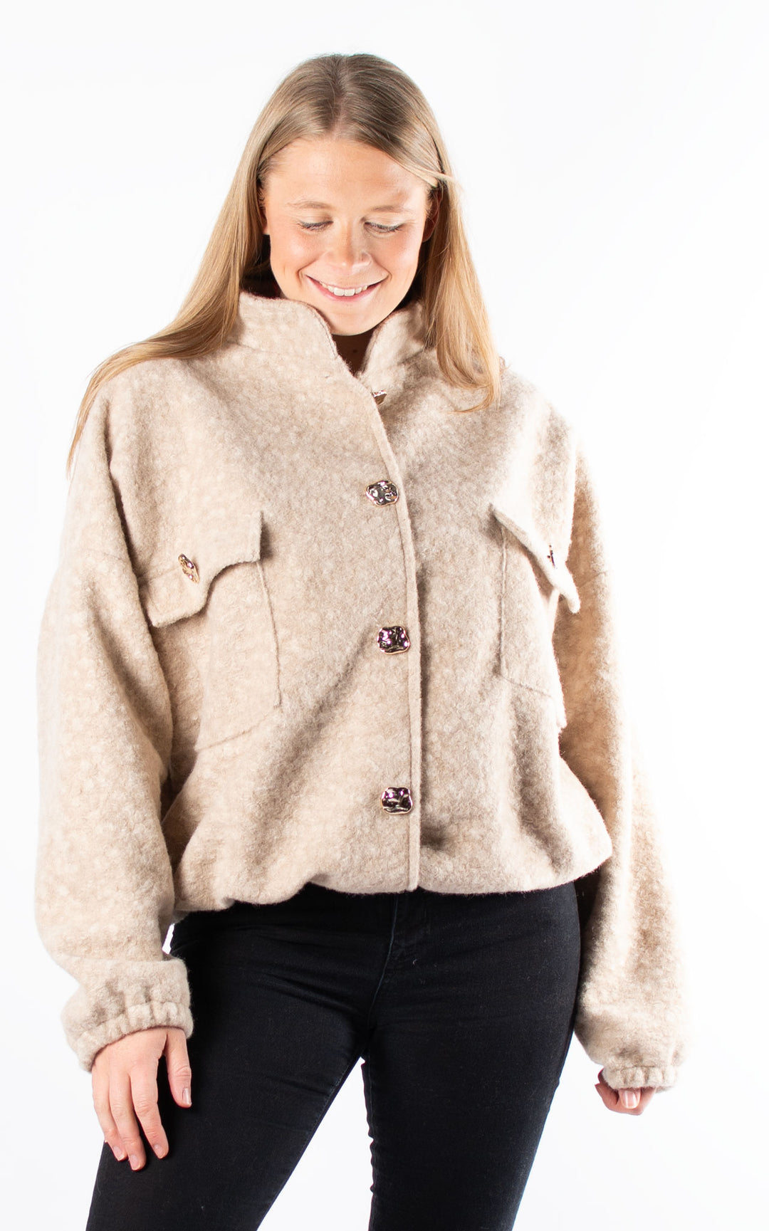 Boucle Bomber Jacket | Dappled | Beige