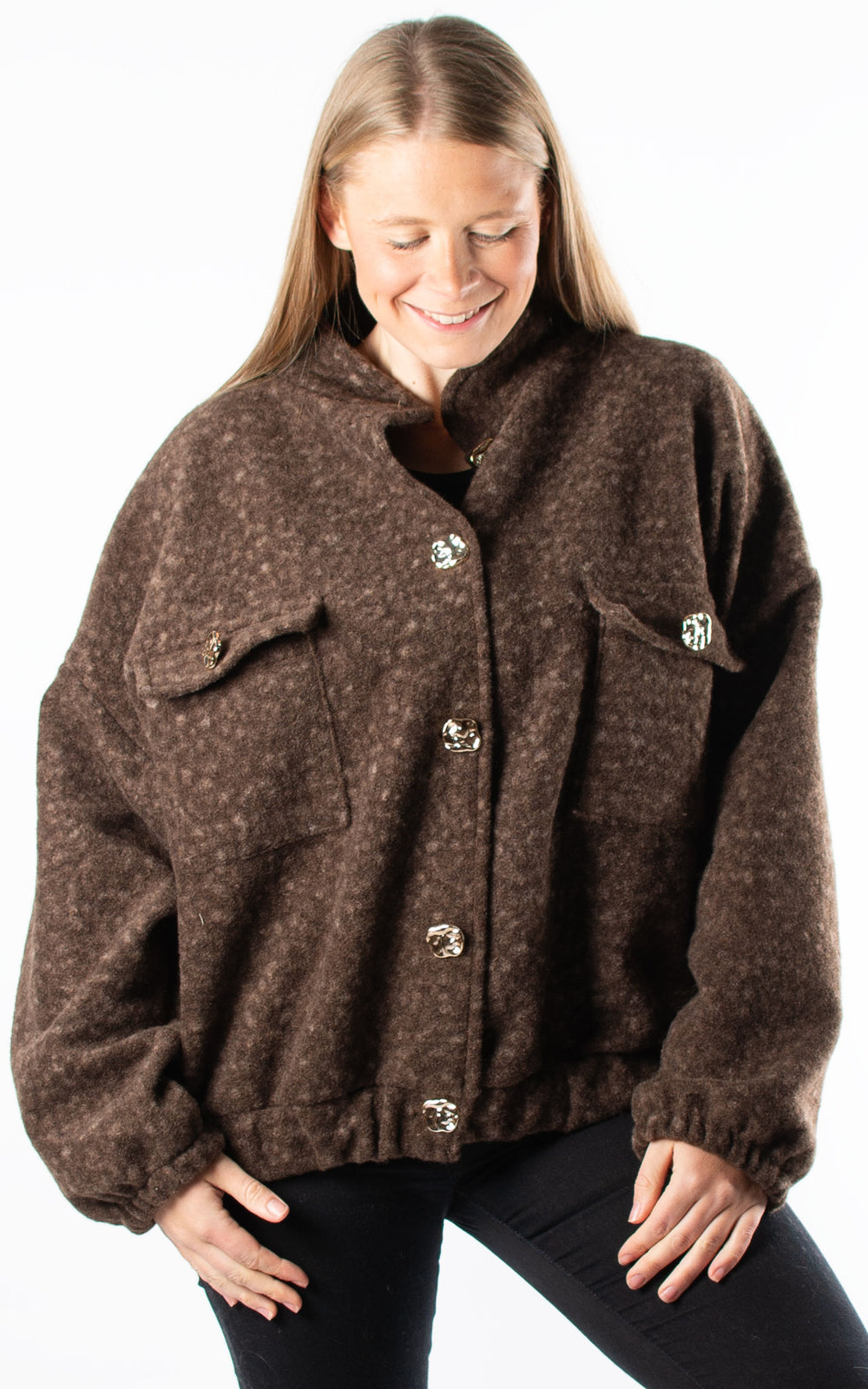 Boucle Bomber Jacket | Dappled | Chocolate