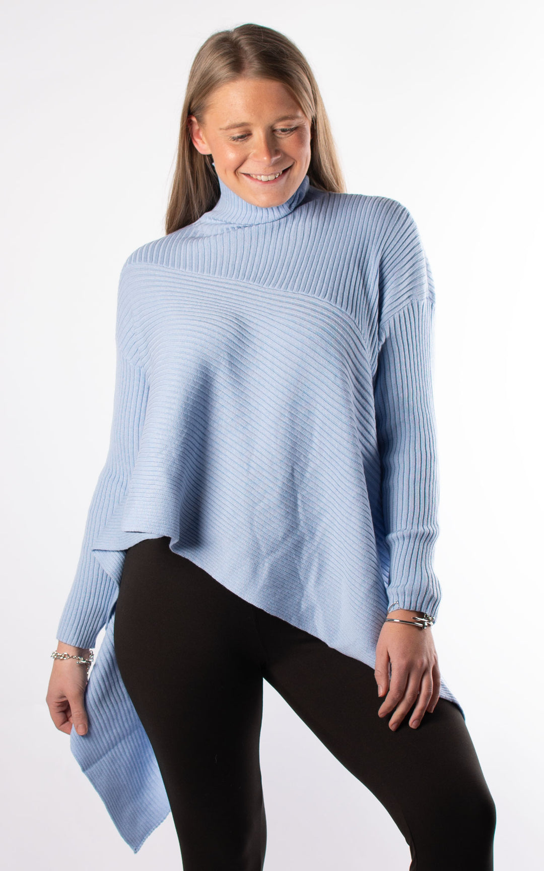 High Neck Ribbed Jumper | Blue