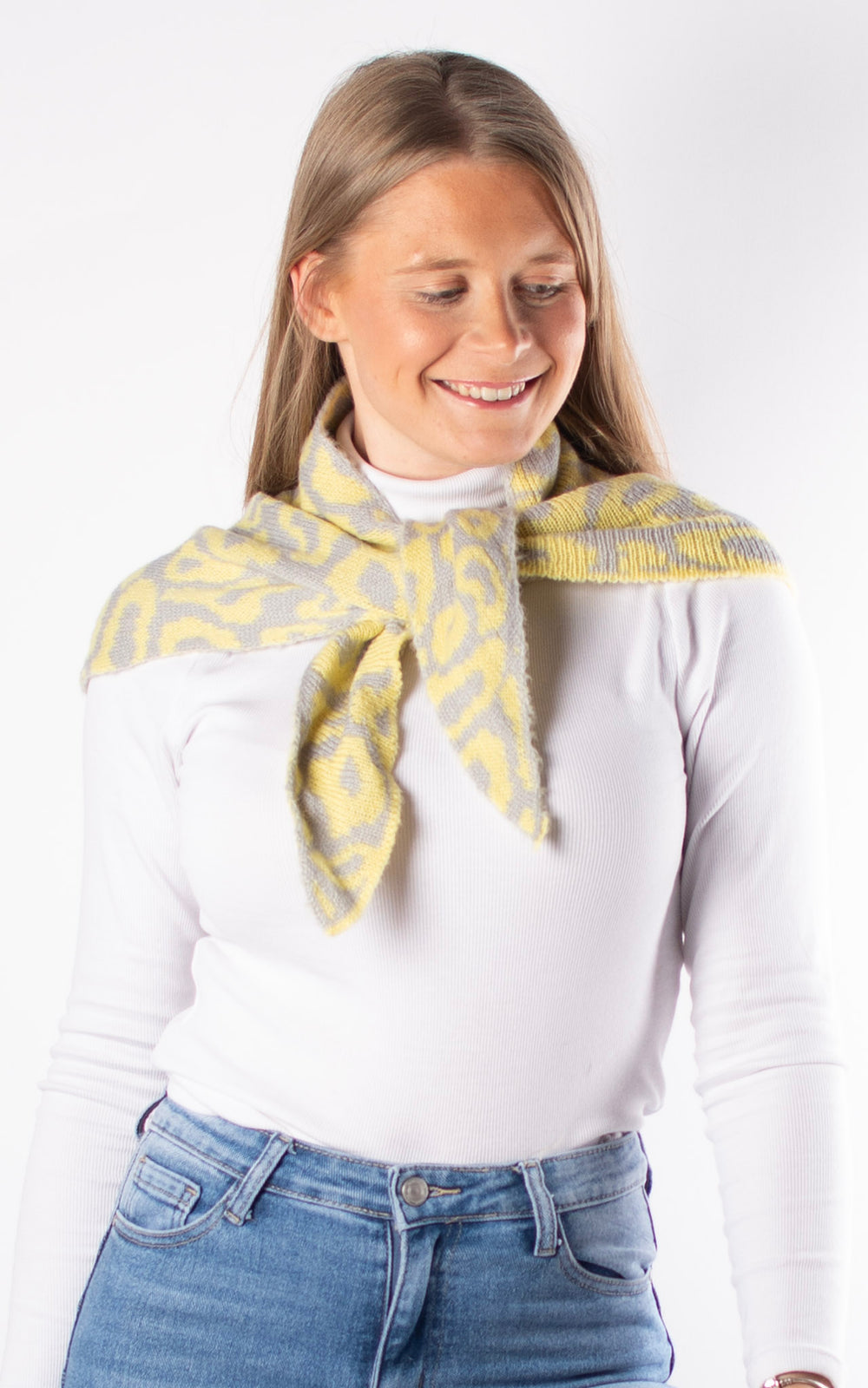Knitted Triangle Scarf | Leopard |Yellow and Grey