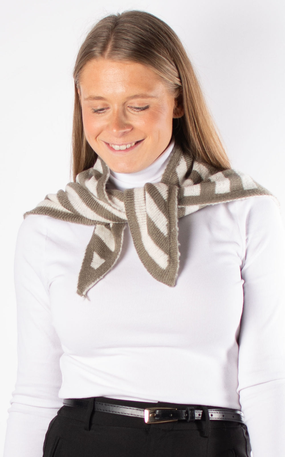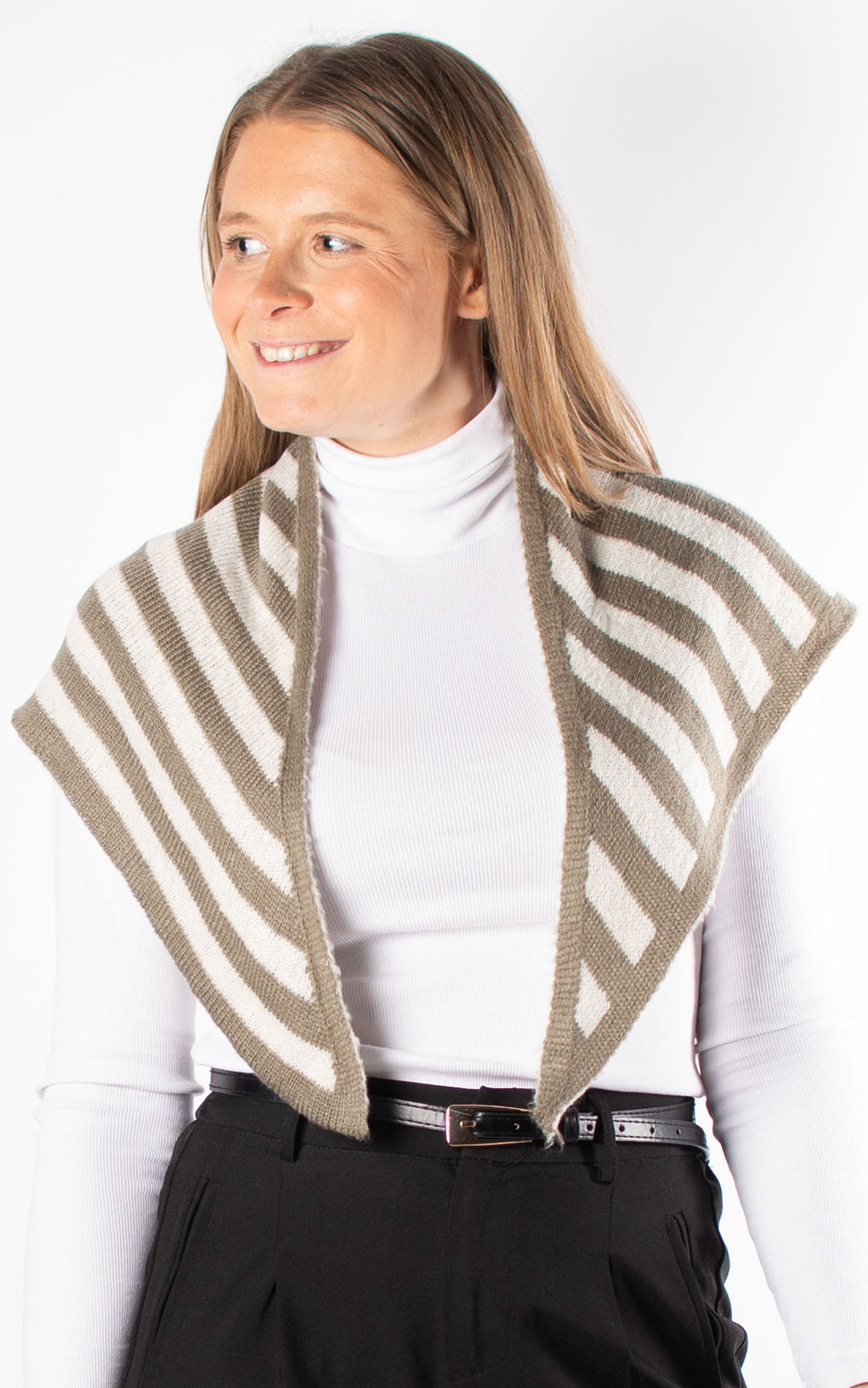 Knitted Triangle Scarf | Striped | Khaki & White