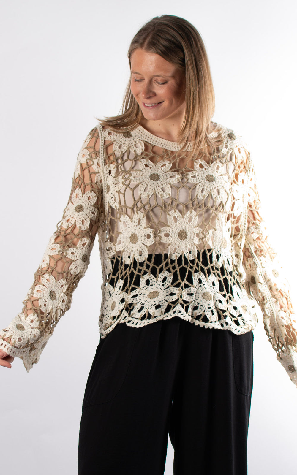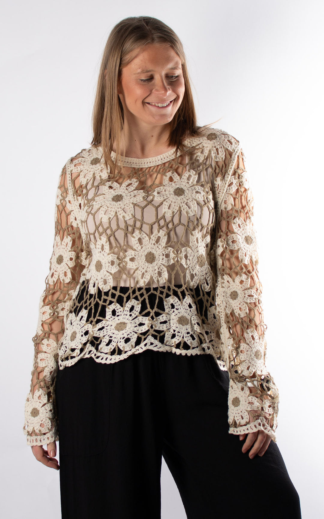 Sienna Floral Crochet Jumper | Taupe
