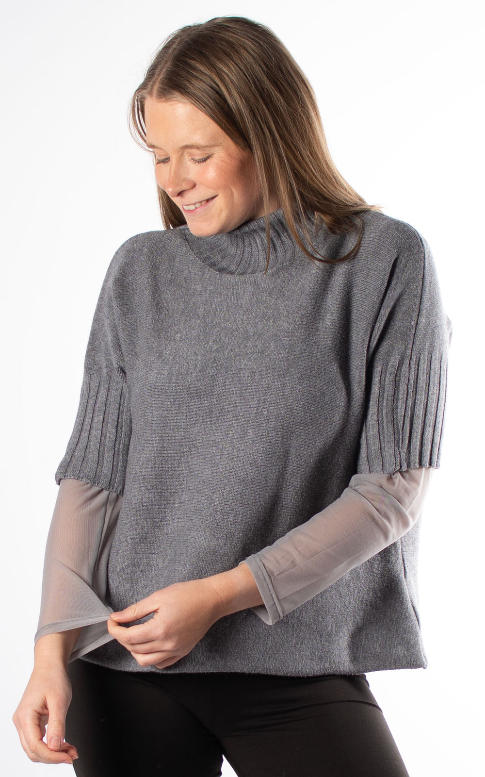 Ribbed High Neck Jumper | Grey