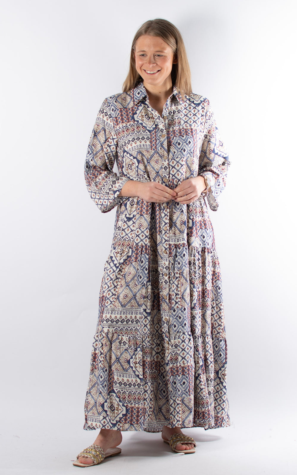 Palma Pattern Shirt Dress | Blue
