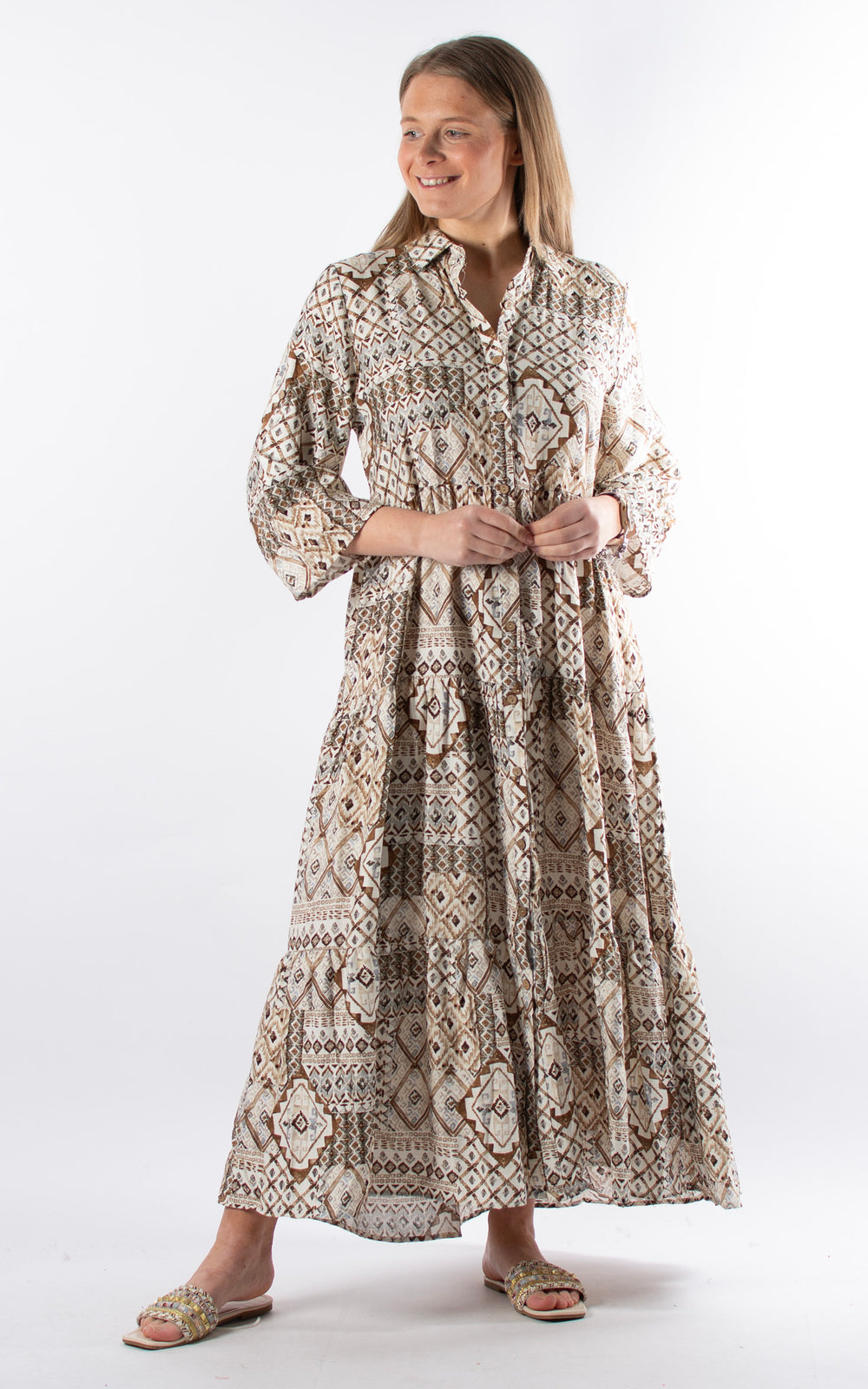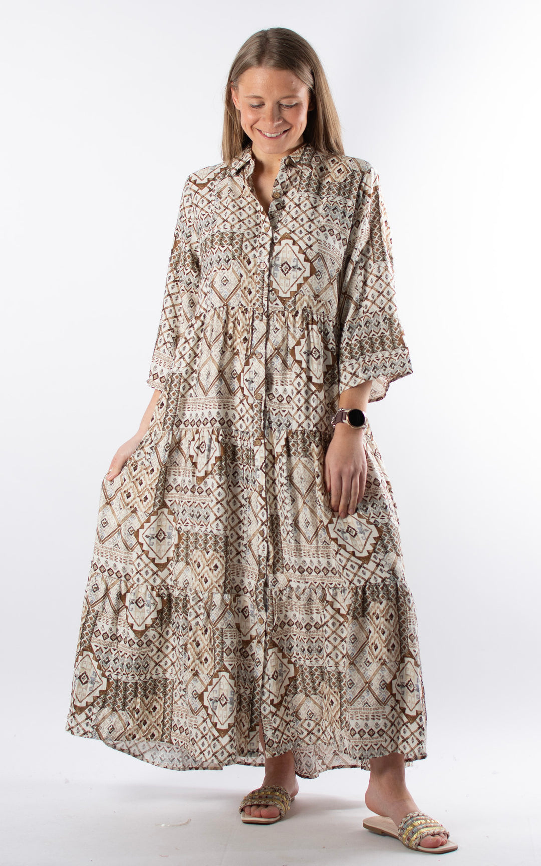 Palma Pattern Shirt Dress | Brown