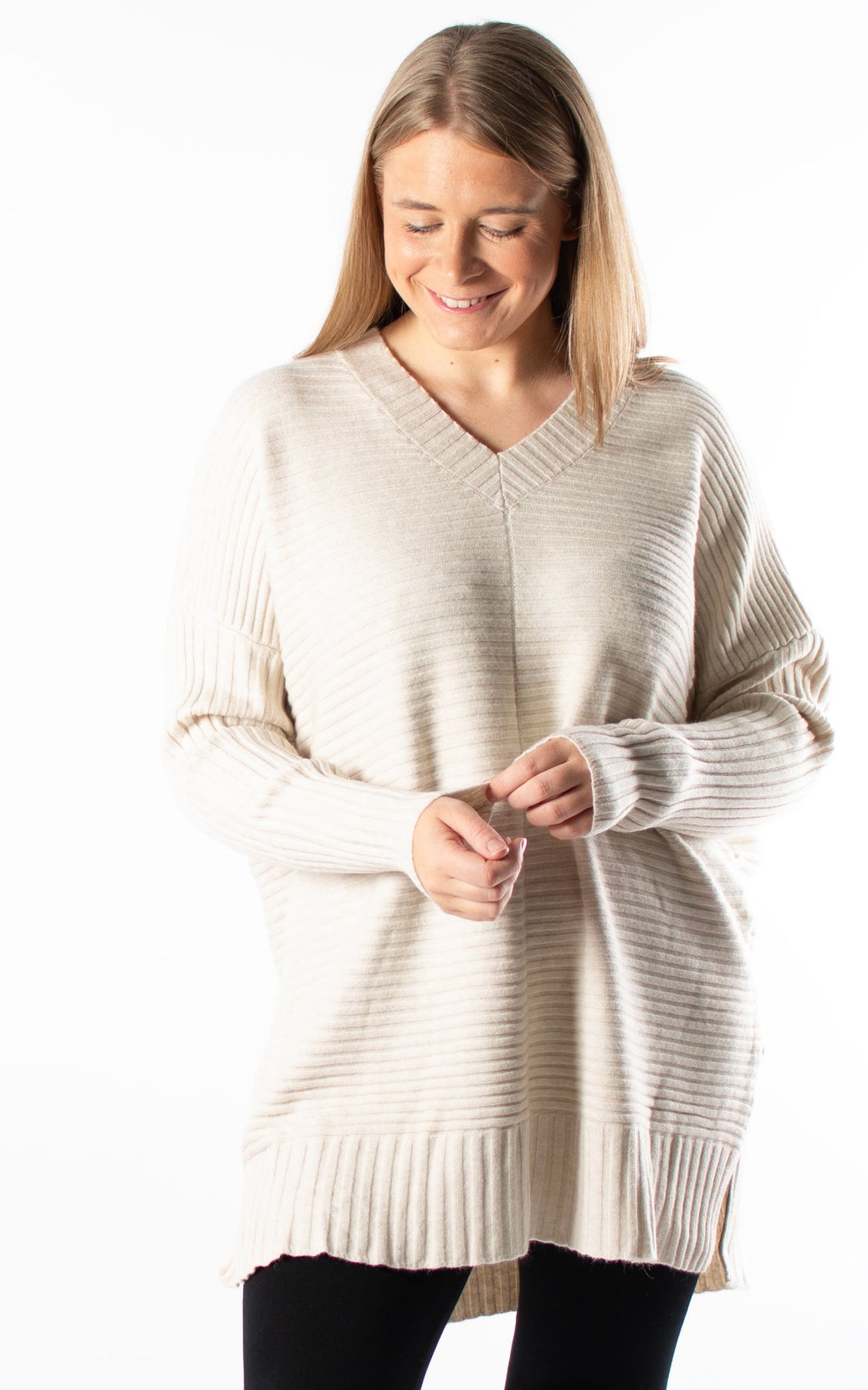Ribbed V-neck | Beige