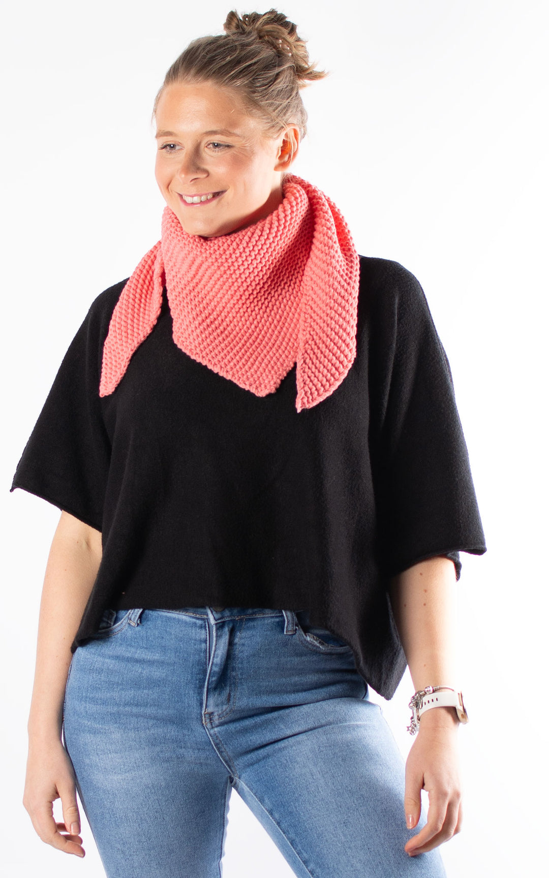 Knitted Triangle Scarf | Leopard |Pink & Yellow