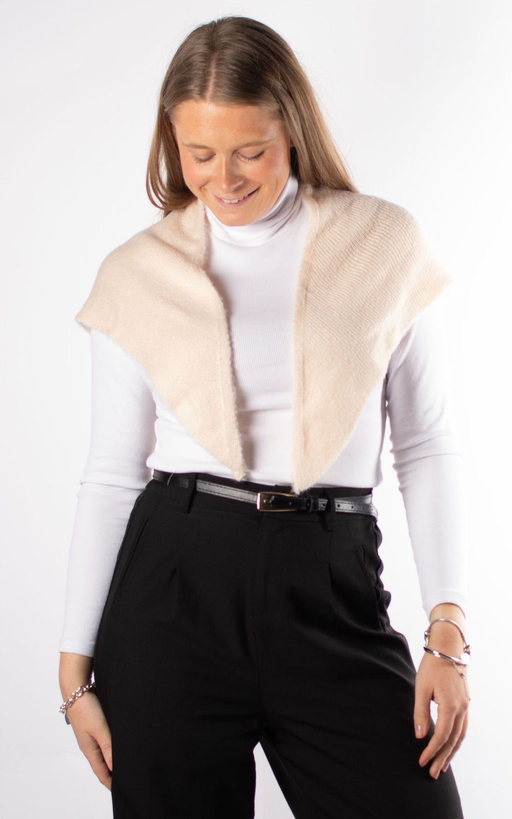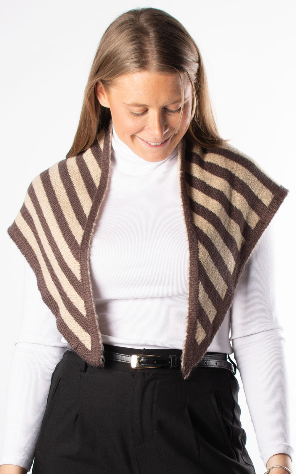 Knitted Triangle Scarf | Striped | Chocolate & Beige