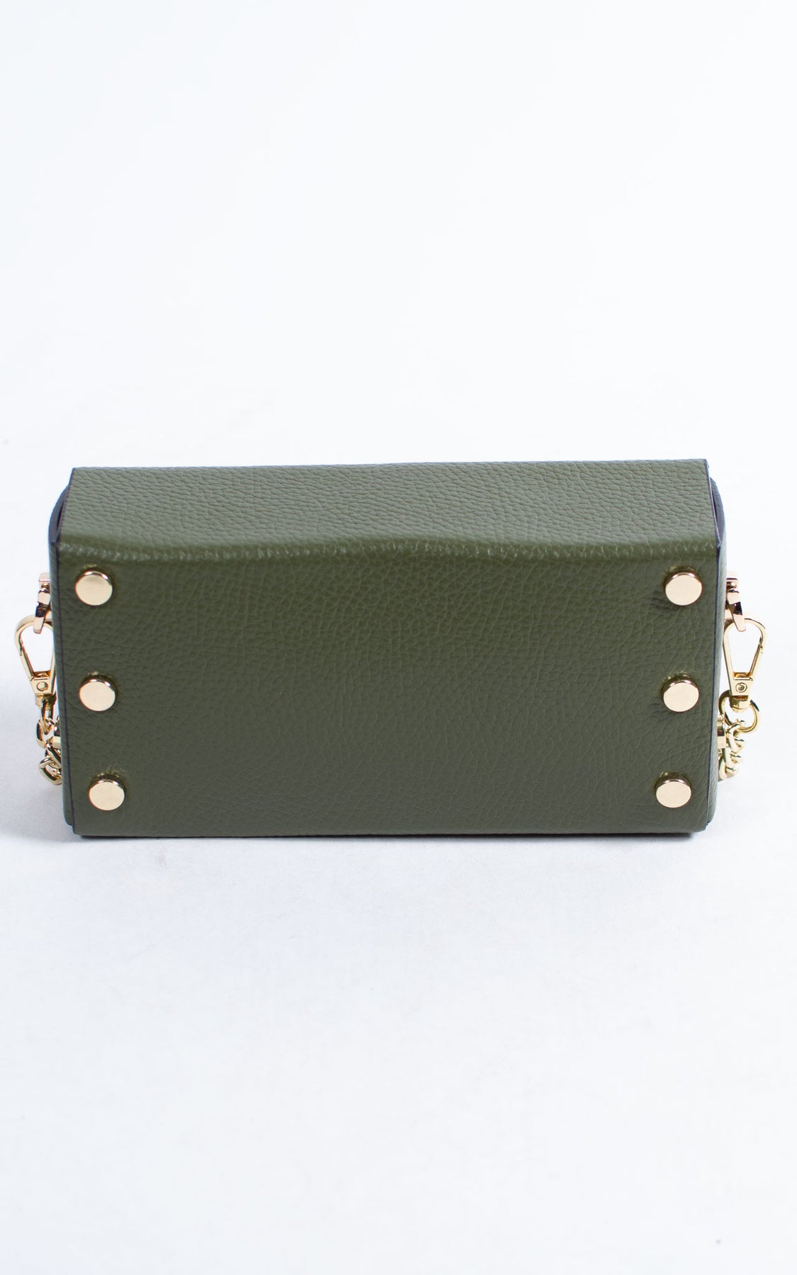 Made in Italy. Features a detachable gold chain strap, perfect for evenings out.